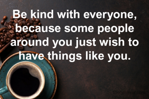 Be kind with everyone, because some people around you just wish to have things like you.
