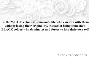 Be the WHITE colour in someone's life who can mix with them without losing their originality, instead of being someone's BLACK colour who dominates and forces to lose their own self