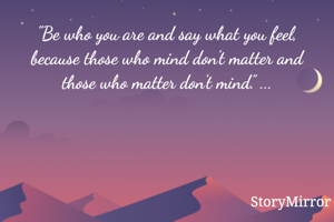"Be who you are and say what you feel, because those who mind don't matter and those who matter don't mind.” ...