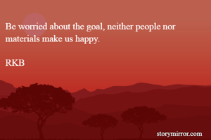 Be worried about the goal, neither people nor materials make us happy. RKB