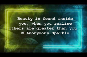 Beauty is found inside you, when you realise others are greater than you. © Anonymous Sparkle