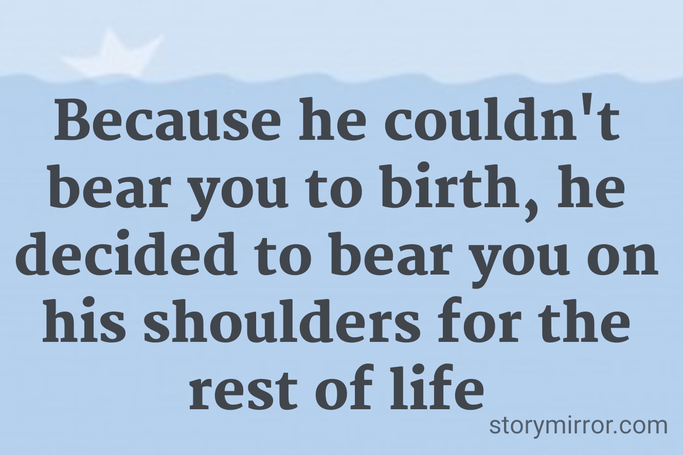 Because he couldn't bear you to birth, he decided to bear you on his shoulders for the rest of life