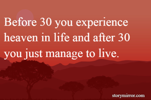 Before 30 you experience heaven in life and after 30 you just manage to live.