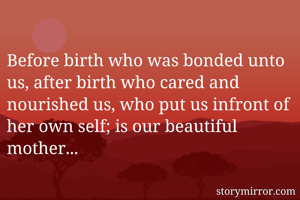 Before birth who was bonded unto us, after birth who cared and nourished us, who put us infront of her own self; is our beautiful mother...