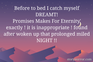 Before to bed I catch myself DREAMT! Promises Makes For Eternity' exactly ! it is inappropriate ! found after woken up that prolonged miled NIGHT !!