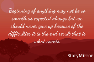 Beginning of anything may not be so smooth as expected always but we should never give up because of the difficulties it is the end result that is what counts