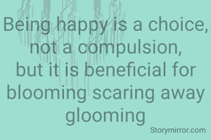 Being happy is a choice, not a compulsion, but it is beneficial for blooming scaring away glooming