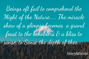 Beings oft fail to comprehend the Might of the Nature..... The miracle shew of a glimpse becomes a grand feast to the beholders & a bliss to sense, to Sense the depth of thee.....