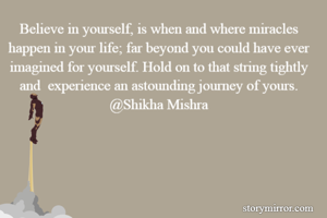 Believe in yourself, is when and where miracles happen in your life; far beyond you could have ever imagined for yourself. Hold on to that string tightly and experience an astounding journey of yours. @Shikha Mishra