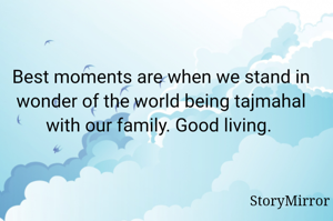 Best moments are when we stand in wonder of the world being tajmahal with our family. Good living.