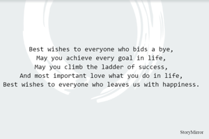 Best wishes to everyone who bids a bye, May you achieve every goal in life, May you climb the ladder of success, And most important love what you do in life, Best wishes to everyone who leaves us with happiness.