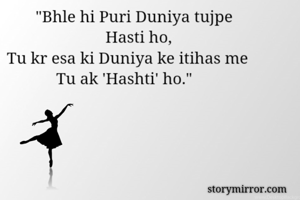 "Bhle hi Puri Duniya tujpe Hasti ho, Tu kr esa ki Duniya ke itihas me Tu ak 'Hashti' ho."