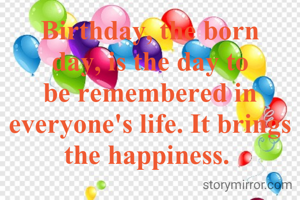 Birthday, the born day, is the day to be remembered in everyone's life. It brings the happiness.