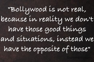 "Bollywood is not real, because in reality we don't have those good things and situations, instead we have the opposite of those"