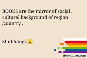 BOOKS are the mirror of social , cultural background of region /country . Shubhangi 🙂