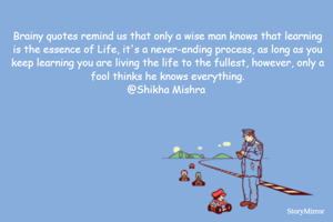 Brainy quotes remind us that only a wise man knows that learning is the essence of Life, it's a never-ending process, as long as you keep learning you are living the life to the fullest, however, only a fool thinks he knows everything.