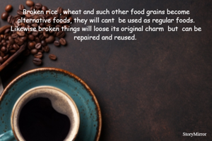 Broken rice , wheat and such other food grains become alternative foods, they will cant be used as regular foods. Likewise broken things will loose its original charm but can be repaired and reused.