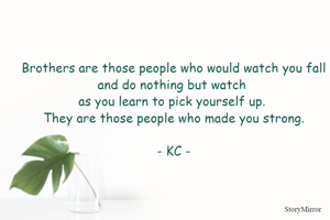 Brothers are those people who would watch you fall and do nothing but watch as you learn to pick yourself up. They are those people who made you strong. - KC -
