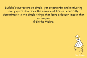 Buddha's quotes are so simple, yet so powerful and motivating every quote describes the essence of life so beautifully. Sometimes it's the simple things that leave a deeper impact than we imagine. @Shikha Mishra