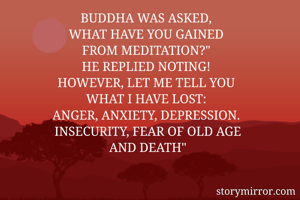 BUDDHA WAS ASKED, WHAT HAVE YOU GAINED FROM MEDITATION?" HE REPLIED NOTING! HOWEVER, LET ME TELL YOU WHAT I HAVE LOST: ANGER, ANXIETY, DEPRESSION. INSECURITY, FEAR OF OLD AGE AND DEATH"