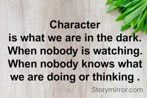 Character is what we are in the dark. When nobody is watching. When nobody knows what we are doing or thinking .