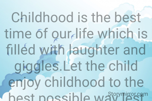Childhood is the best time of our life which is filled with laughter and giggles.Let the child enjoy childhood to the best possible way lest the regret continues to linger way through life long.