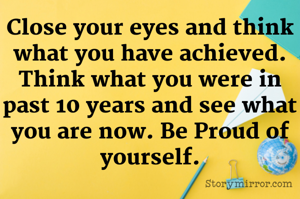 Close your eyes and think what you have achieved. Think what you were in past 10 years and see what you are now. Be Proud of yourself.