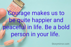 Courage makes us to be quite happier and peaceful in life. Be a bold person in your life.