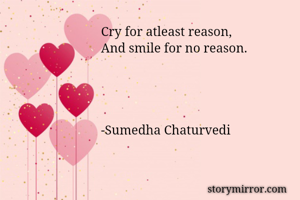 Cry for atleast reason, And smile for no reason. -Sumedha Chaturvedi