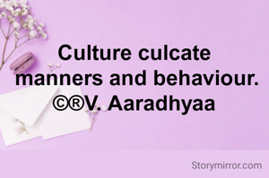 Culture culcate manners and behaviour. ©®V. Aaradhyaa