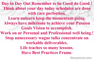 Always have milestone to achieve your Passion Goals Vision to accomplish.