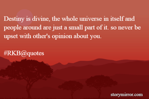 Destiny is divine, the whole universe in itself and people around are just a small part of it. so never be upset with other's opinion about you. #RKB@quotes