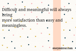 Difficult and meaningful will always bring more satisfaction than easy and meaningless.