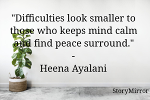 "Difficulties look smaller to those who keeps mind calm and find peace surround." - Heena Ayalani