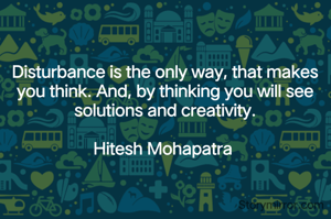 Disturbance is the only way, that makes you think. And, by thinking you will see solutions and creativity.