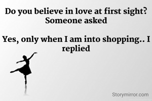 Do you believe in love at first sight? Someone asked Yes, only when I am into shopping.. I replied