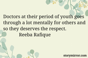 Doctors at their period of youth goes through a lot mentally for others and so they deserves the respect.