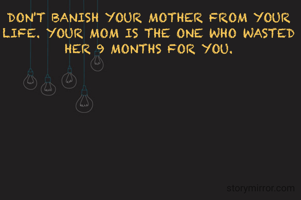 DON'T BANISH YOUR MOTHER FROM YOUR LIFE. YOUR MOM IS THE ONE WHO WASTED HER 9 MONTHS FOR YOU.