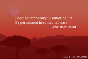 Don't be temporary in someOne life Be permanent in someone heart ♥ -christian saini