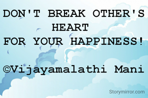 DON'T BREAK OTHER'S HEART FOR YOUR HAPPINESS! ©Vijayamalathi Mani