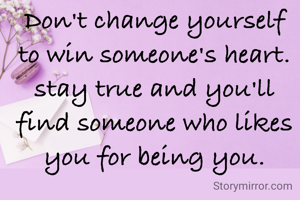 Don't change yourself to win someone's heart. stay true and you'll find someone who likes you for being you.
