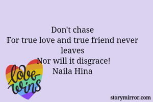 Don't chase For true love and true friend never leaves Nor will it disgrace! Naila Hina