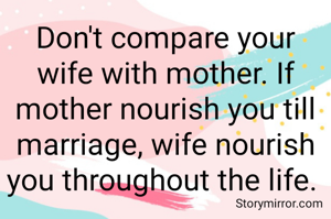 Don't compare your wife with mother. If mother nourish you till marriage, wife nourish you throughout the life.