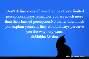 Don't define yourself based on the other's limited perception,always remember you are much more than their limited perception.No matter how much you explain yourself; they would always perceive you the way they want. @Shikha Mishra