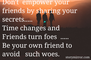 Don't empower your friends by sharing your secrets..... Time changes and Friends turn foes ..... Be your own friend to avoid such woes.