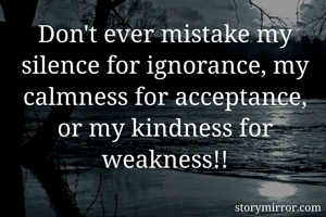 Don't ever mistake my silence for ignorance, my calmness for acceptance, or my kindness for weakness!!