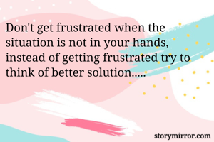 Don't get frustrated when the situation is not in your hands, instead of getting frustrated try to think of better solution.....
