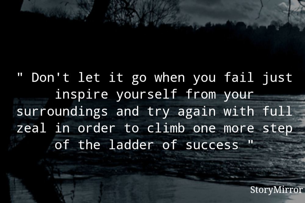 " Don't let it go when you fail just inspire yourself from your surroundings and try again with full zeal in order to climb one more step of the ladder of success "