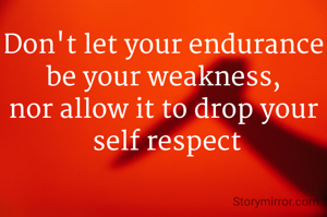 Don't let your endurance be your weakness, nor allow it to drop your self respect