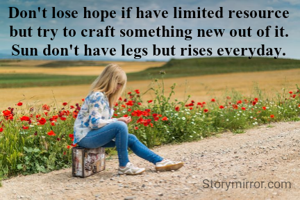 Don't lose hope if have limited resource but try to craft something new out of it. Sun don't have legs but rises everyday.